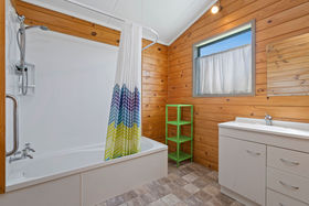 The immaculate accommodation is complemented by an open plan living area with fabulous sea views to enjoy. The living area flows out to the wooden decking with stairs going onto the lawn area, which allows you to stroll down to the beach. Your family and friends will truly enjoy this opportunity and won't want to leave. Outside, there is plenty of room for family and friends to pitch their tents and the kids to play backyard cricket.