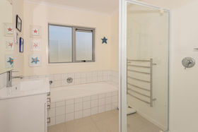 Gaze out to your private garden whilst preparing meals from your modern kitchen. The relaxed living area is a window of light with no less than 3 ranch sliders but also a heat pump for warming winter evenings.
